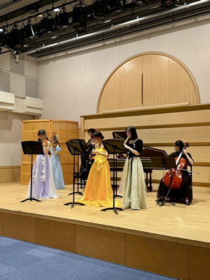 日頃の練習の成果の集大成として、9月にサロンコンサート、3月に定期演奏会を行います。本格的なホールで演奏を楽しむことができます。