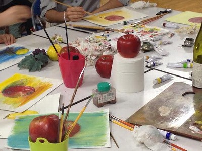 年に3回ほど,1~2泊の合宿を行っております。(もちろん参加は自由です)。花火や温泉,川や海に行くなど,会員の親睦を深めるのが主な目的です!もちろん,旅先の景色をスケッチすることも可能です。また,合宿以外にも常に何かしらイベントがあります。夏には皆で美術館やお祭りに行きました。冬にはクリスマスパーティを開催しました。これら以外にも普段から食事会を開催したり,先輩の展覧会を観に行くなど,会員の仲はとても良いです!有志で展覧会を開催することもあります。